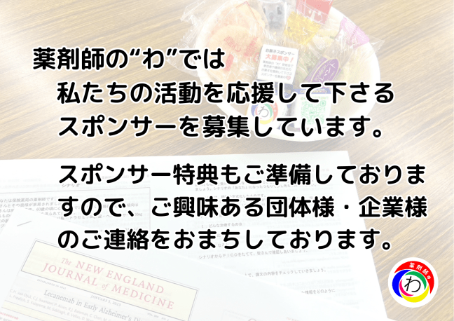 薬剤師の“わ”の活動を応援して下さるスポンサーを募集しています。