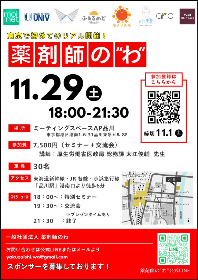今までリアル開催は大阪だけでしたが、今後、より沢山の薬剤師さんや医療に関わる方との輪を広げるために、関東での開催を決めました!