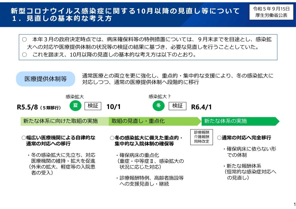 新型コロナウイルス感染症に関する1 0月以降の見直し等について