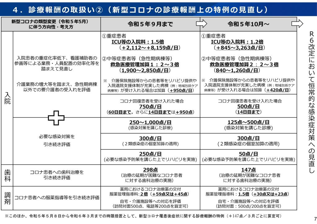 第5類への変更に伴い、5月8日以降診療報酬上の特例について見直しが行われました。