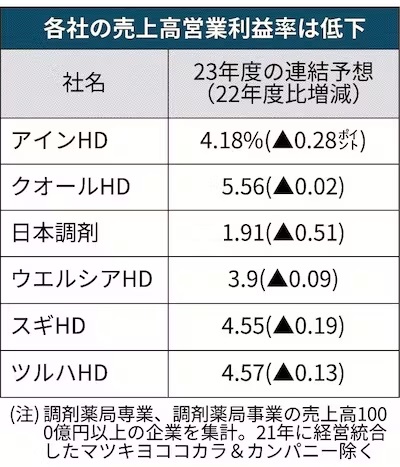 調剤6社、収益率悪化 今年度、報酬改定が直撃