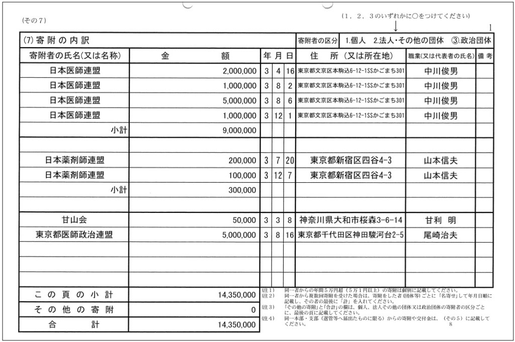 #ちなみに、日本薬剤師連盟からの献金は30万円です