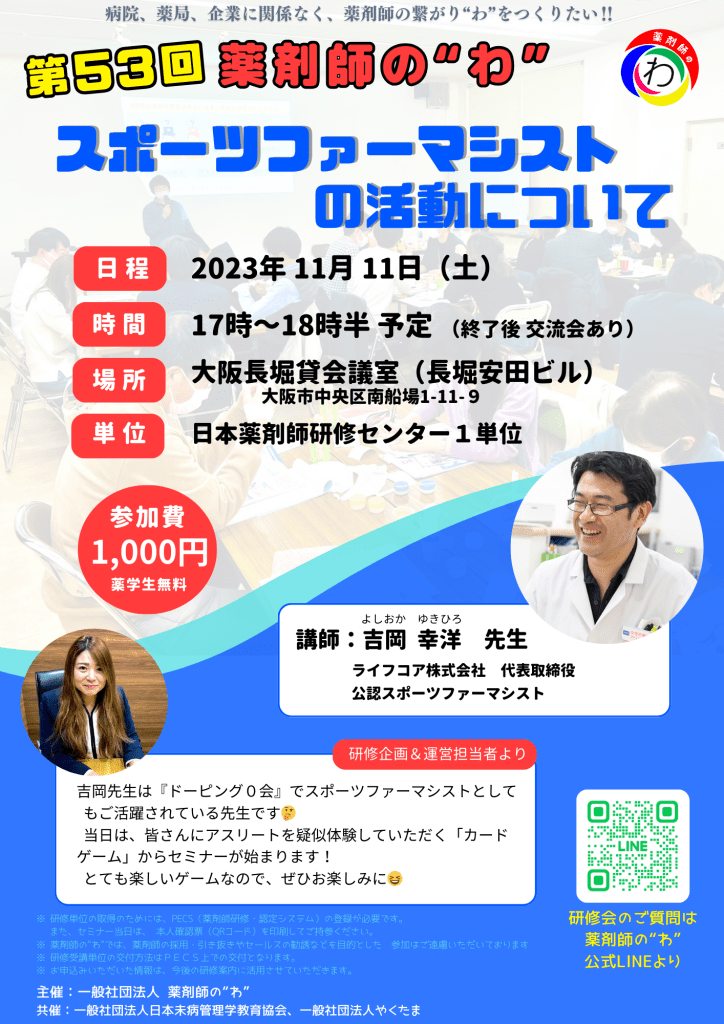 薬剤師の“わ”は、病院、薬局、企業に関係なく、薬剤師の繋がり「輪」を創りたいとの思いから、研修会や交流会を定期的に開催しています!