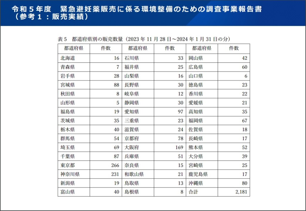 昨年11月28日から始まった「緊急避妊薬を医師の処方箋なしで薬局で試験販売する調査研究」の結果です。