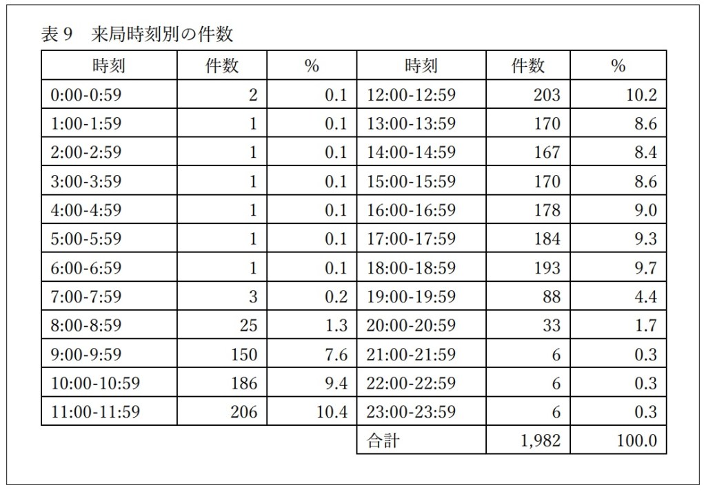「来局時刻別の ID 件数」という項目があり、どの時間帯に来局したのかが報告されています。