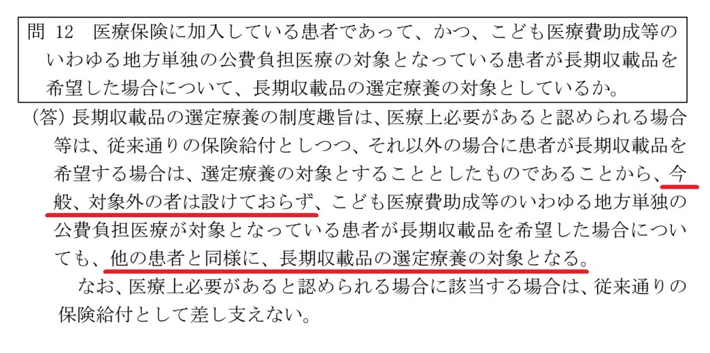 「生活保護受給者については、長期入院選定療養以外の選定療養は医療扶助の支給対象とはならないとしている。」とあります。