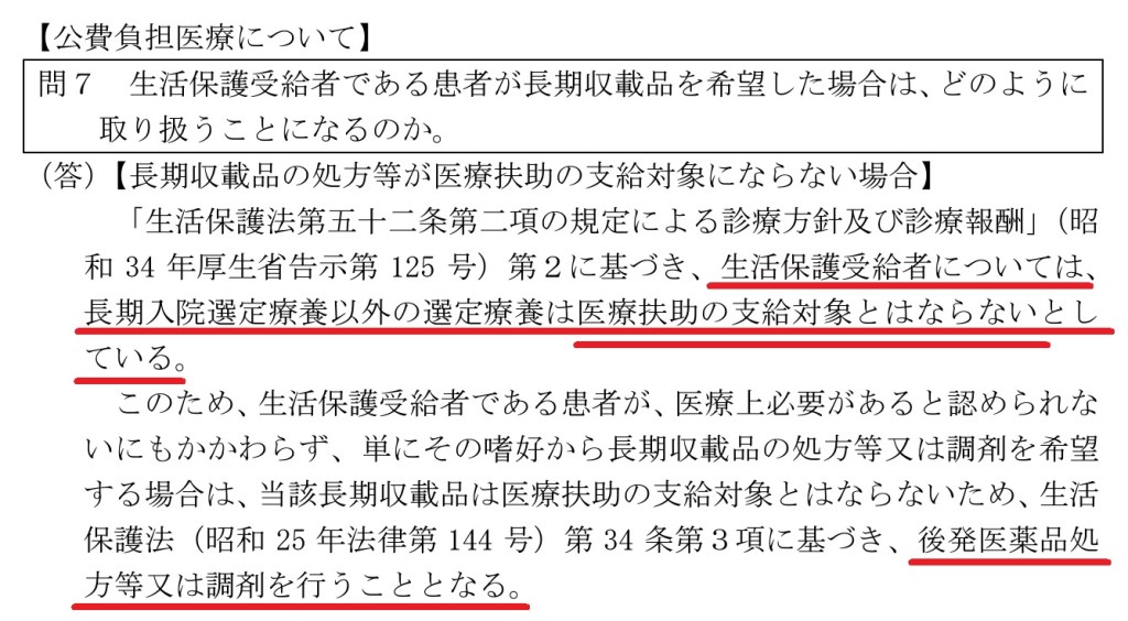 選定療養による「自己負担」が発生してしまうことにより、生活保護受給者には自己負担が発生しない後発医薬品を調剤しなさい
