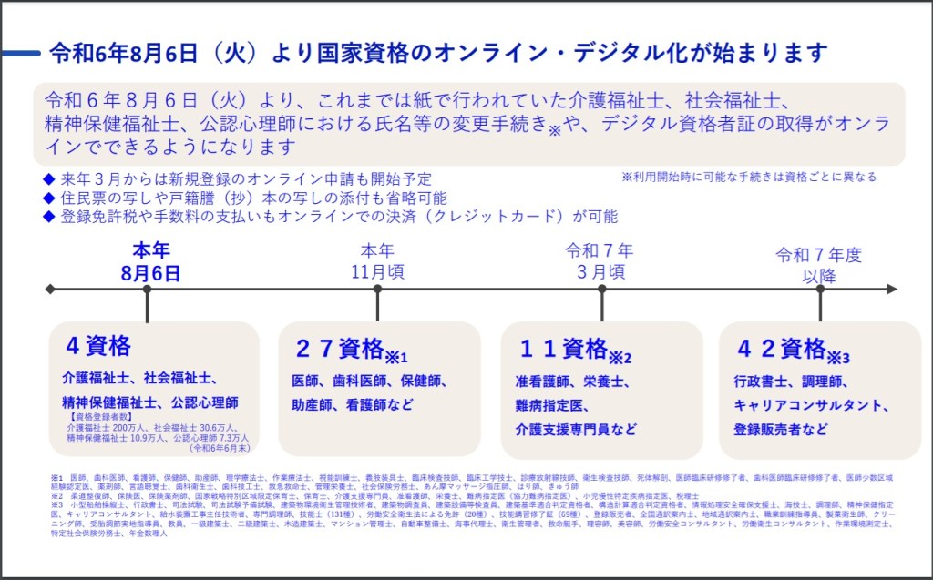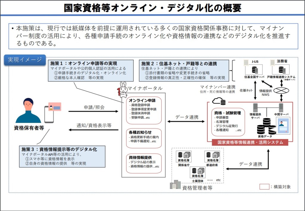 現在、84の国家資格があるようなのですが、マイナンバー法の改正等により、オンライン・デジタル化の対象となりました。