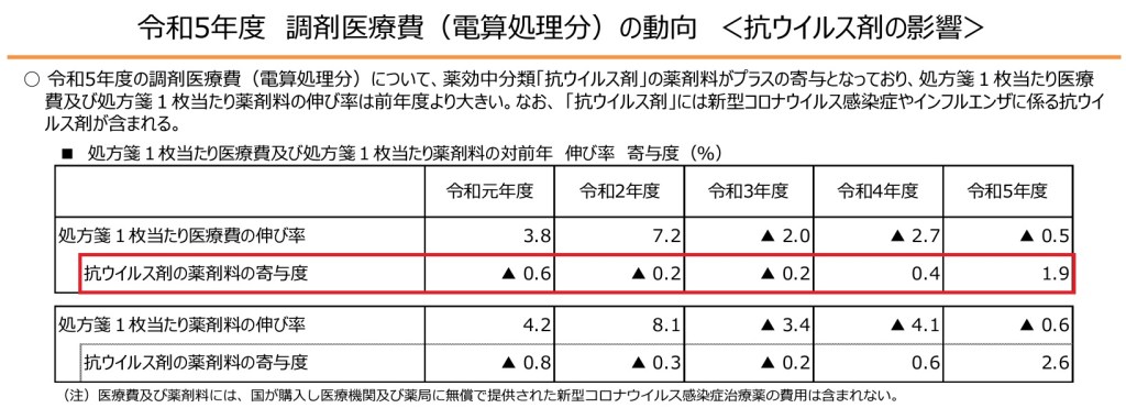 処方箋1枚に対して、金額が高い抗ウイルス剤(新型コロナやインフルエンザの治療薬など)の薬剤料が前年度よりも大きく影響しているのに…
