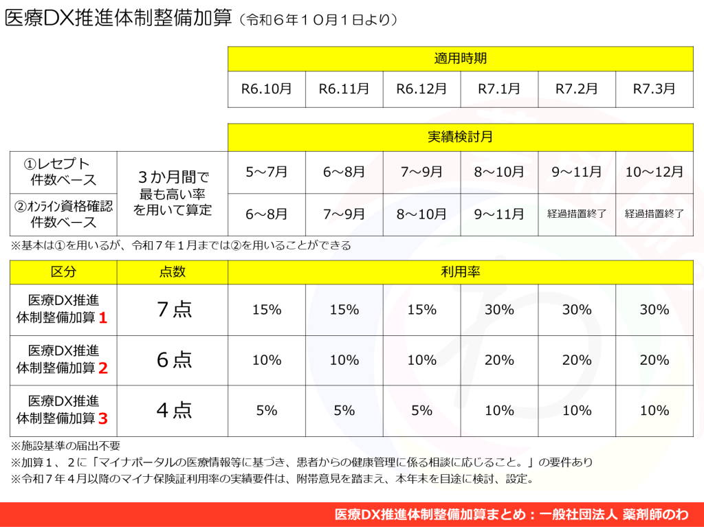 10月からはマイナ保険証利用率に応じて、算定点数が3区分(7点、6点、4点)になります。