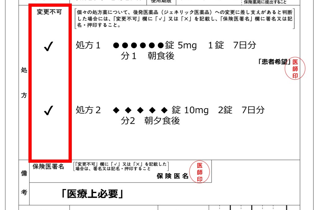 処方箋を受け取ったら、まず「変更不可(医療上必要)」をチェック!