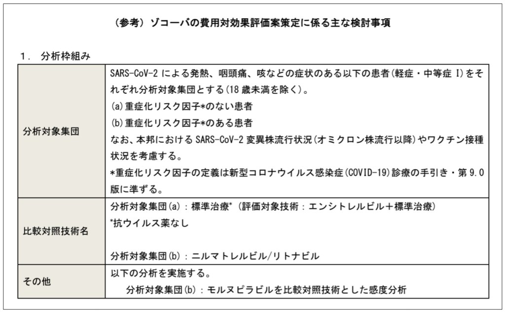 つまり、ゾコーバの費用対効果は、標準治療に比べ、効果が同等で費用は増加するということになる。とのことです。