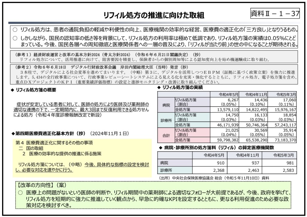 今回、財務省の財政制度等審議会において「リフィル処方の推進に向けた取組」が発表されました。