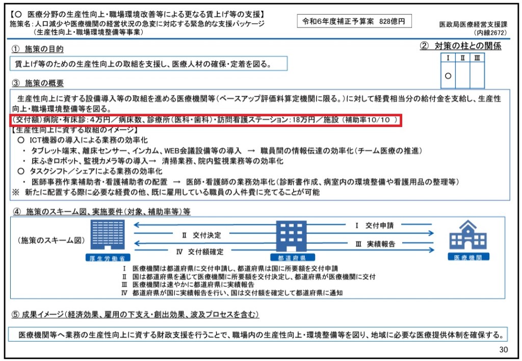今後、最低時給も1,500円を目指すなんてことも言ってますし、「医療分野の生産性向上・職場環境改善等による更なる賃上げ等の支援」として予算が付けられていますが…