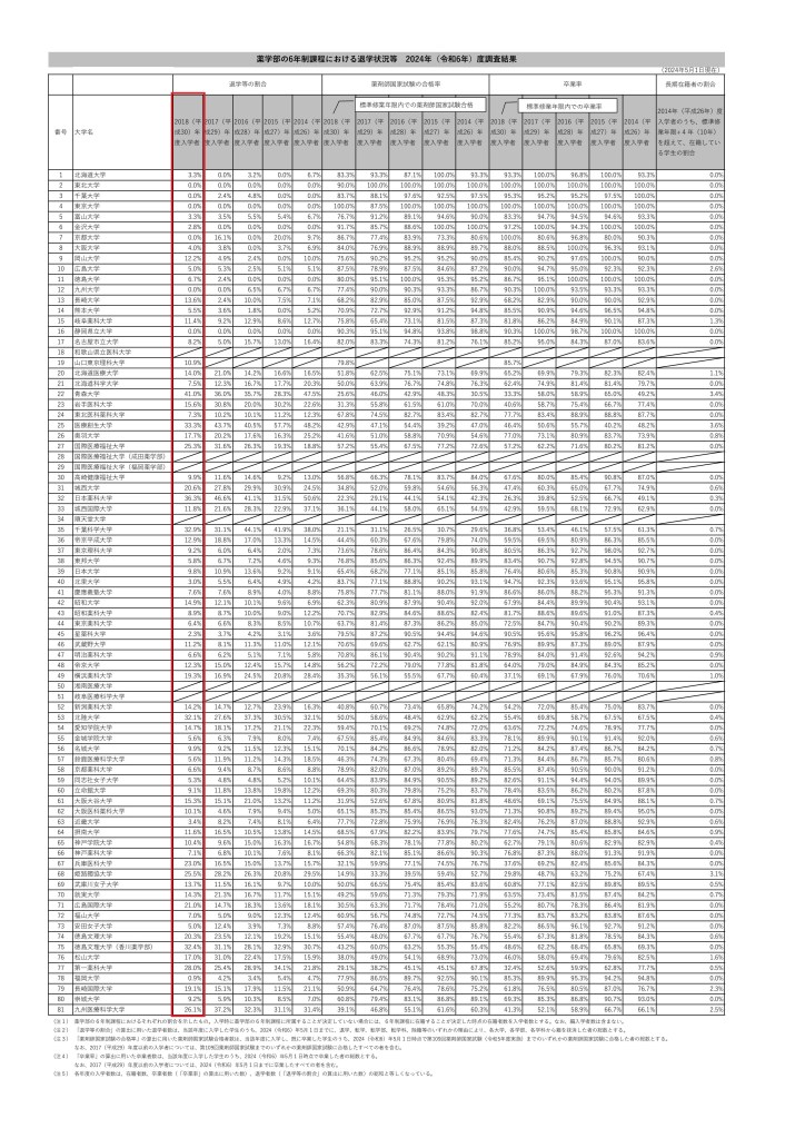 ・薬学部の6年制課程における退学状況等 2024年(令和6年)度調査結果