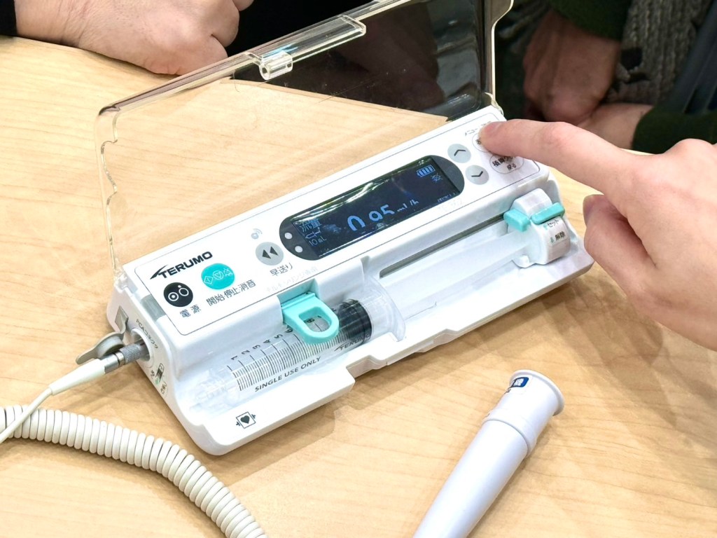 今回の研修では、基礎の「き」ということで、現在でているポンプの種類や薬剤ごとの投与経路について教えて頂きました!