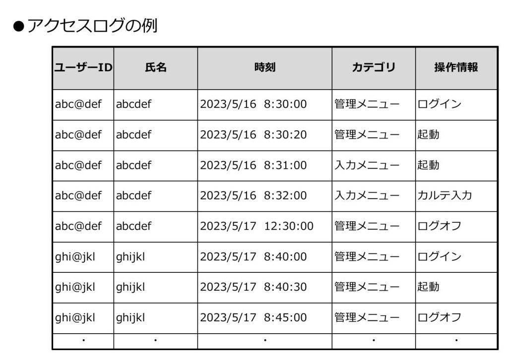 「アクセスログ」は端末の操作記録になります。