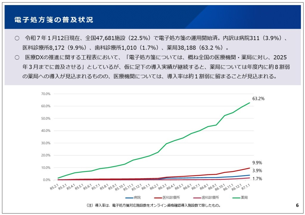 当初の2025年3月末の目標は難しいという事で、令和7年の夏頃に「今後の方向性を整理する」とありますが、電子処方箋は進むのでしょうか?