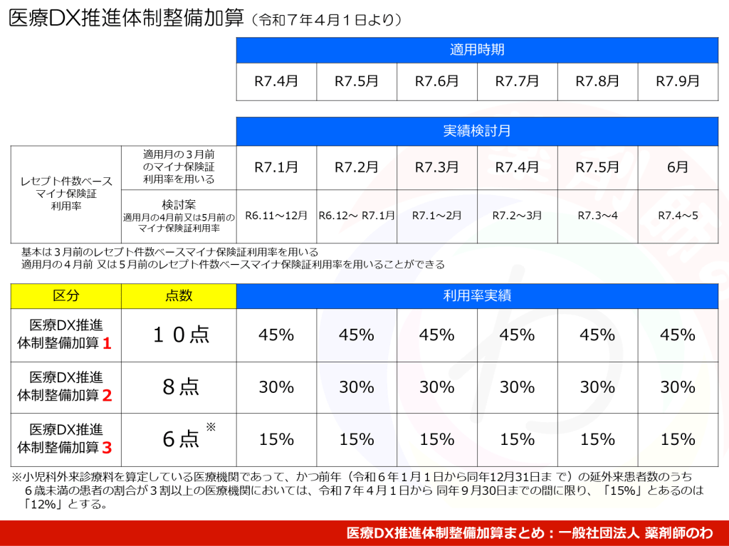 また、特例的な対応として、小児(6歳未満)の患者の割合が3割以上の医療機関では、求められるマイナ保険証の利用率が一部で緩和されます。
