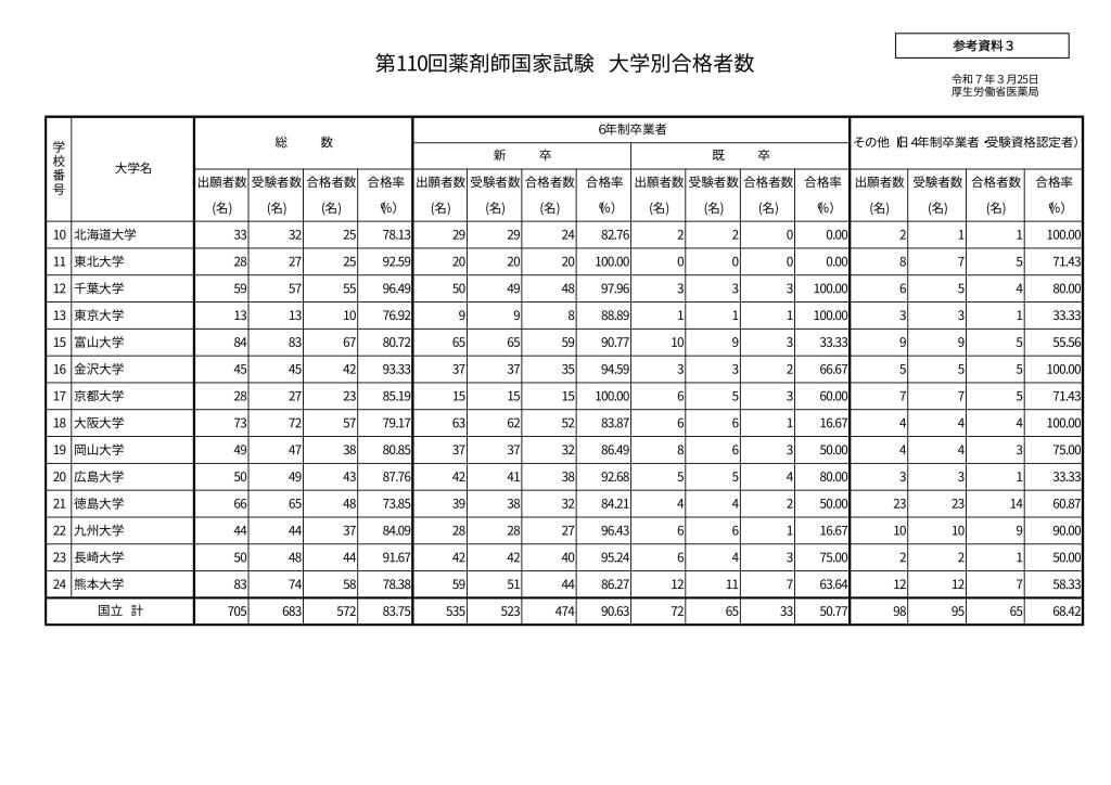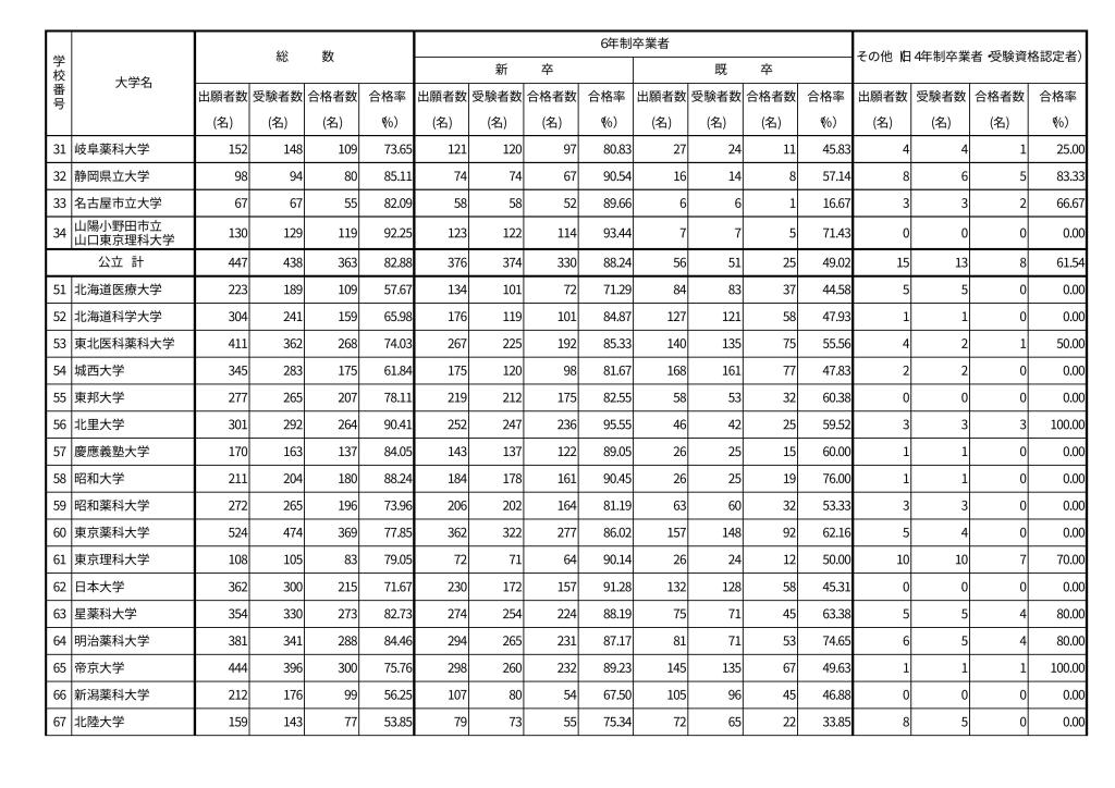 そういう観点から見ると、近畿大学、北里大学、立命館大学と薬学部以外でも有名な大学はすごいですね!