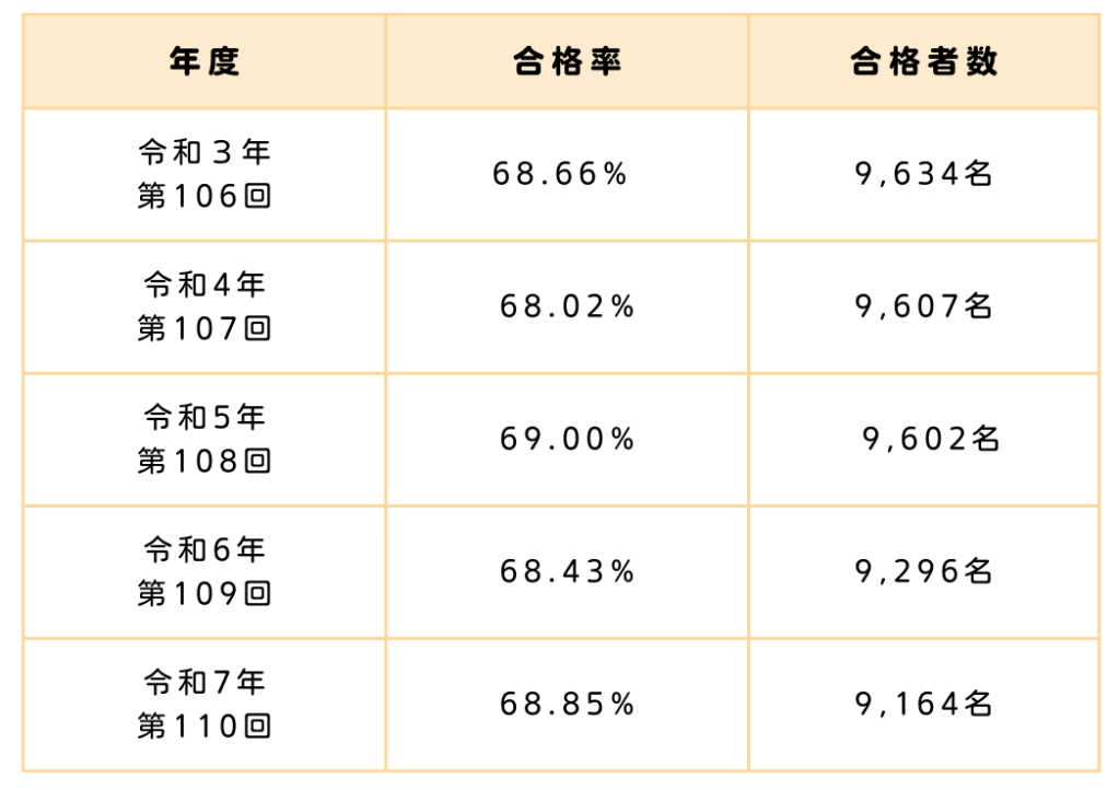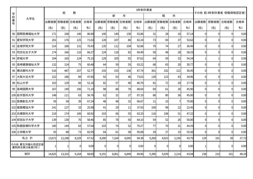 新卒者だけで見ると、受講者は8,061名で合格者は6,849名と84.96%となります。