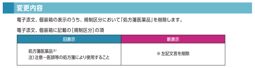 添付文書から「処方箋医薬品」の記載は無くなるようです。