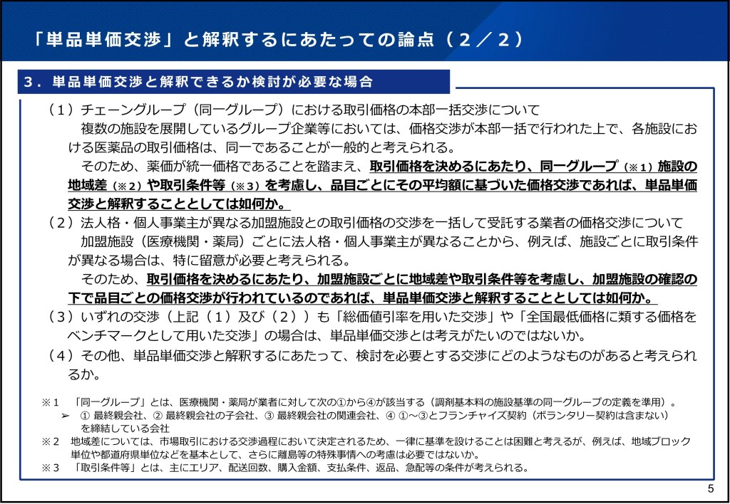 また共同購入については、「加盟施設の確認の下で品目ごとの価格交渉が行われている」のであれば、単品単価交渉とされるとの解釈です。