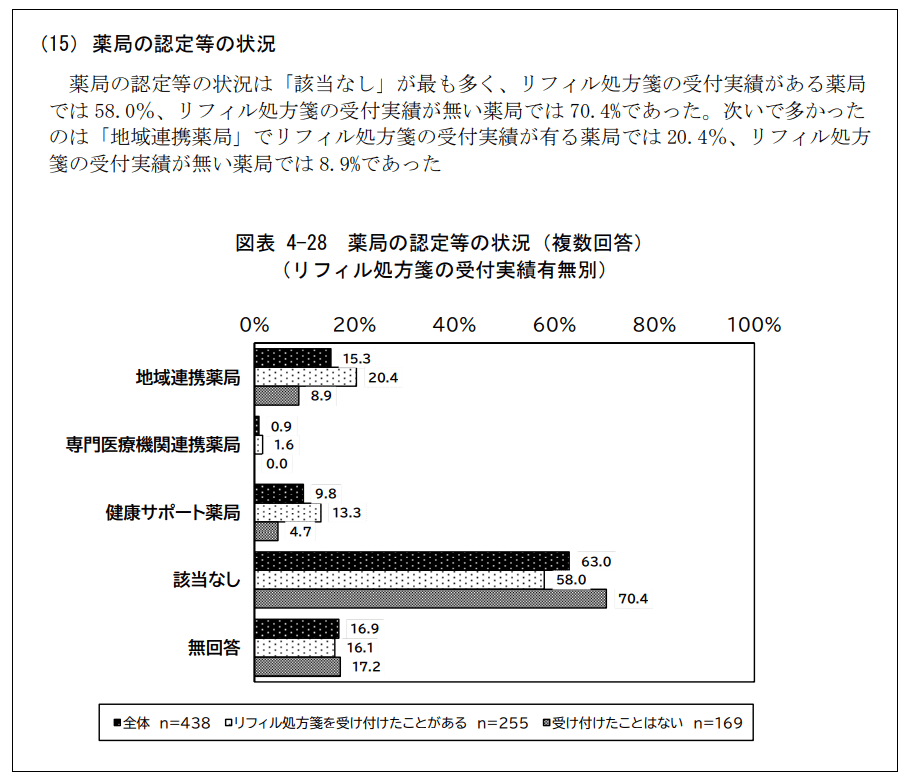 リフィル処方箋を受け付けている薬局の多くが、何の薬局の認定も取得していない結果になっています。