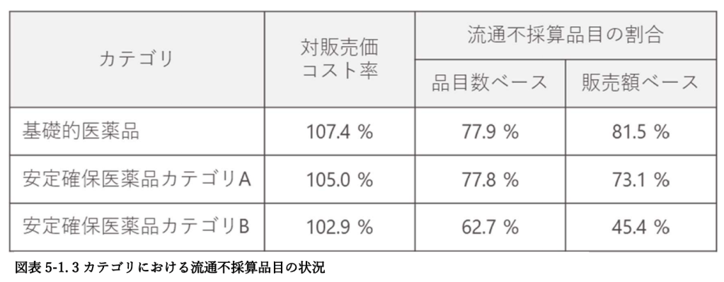 カテゴリ別の医薬品卸の流通コストの把握と流通不採算の状況を調査しています。