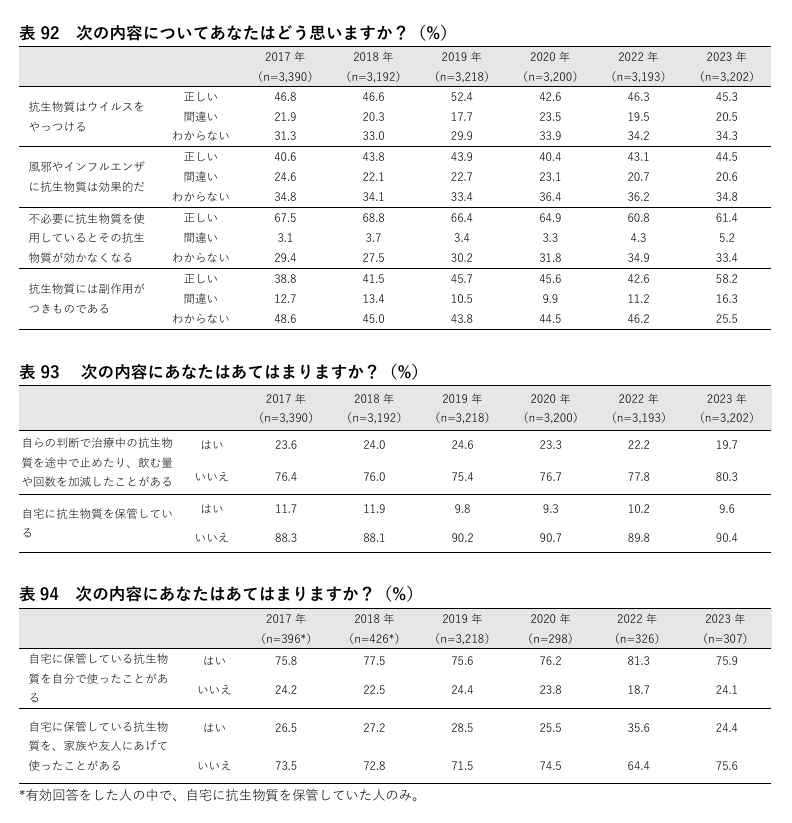 ですが、服用する側の一般国民(医療従事者は除く)への調査では、抗菌薬に対する考えは変わっていないようです。