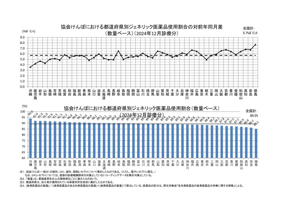 ・都道府県別の後発医薬品割合について, 厚生労働省保険局調査課, (令和6年12月)