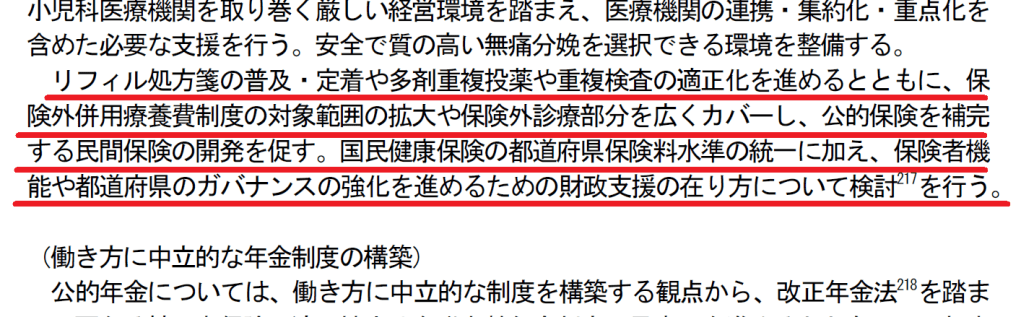 それに関して「公的保険を補完する民間保険の開発」とあるので、OTC類似薬で保険が外された医薬品については、民間保険を使えるようにするのかな?