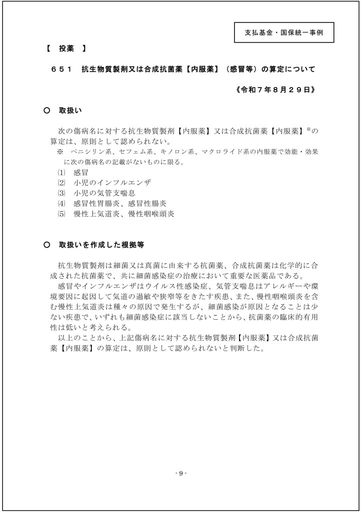 そんな処方に対して社保・国保共に、「感冒等への抗生物質の処方(算定)は認めない」と発表しました。