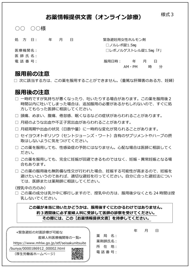①終了すべき研修は公益財団法人日本薬剤師研修センターが実施する「緊急避妊薬の調剤及び販売に関する e-ラーニング」