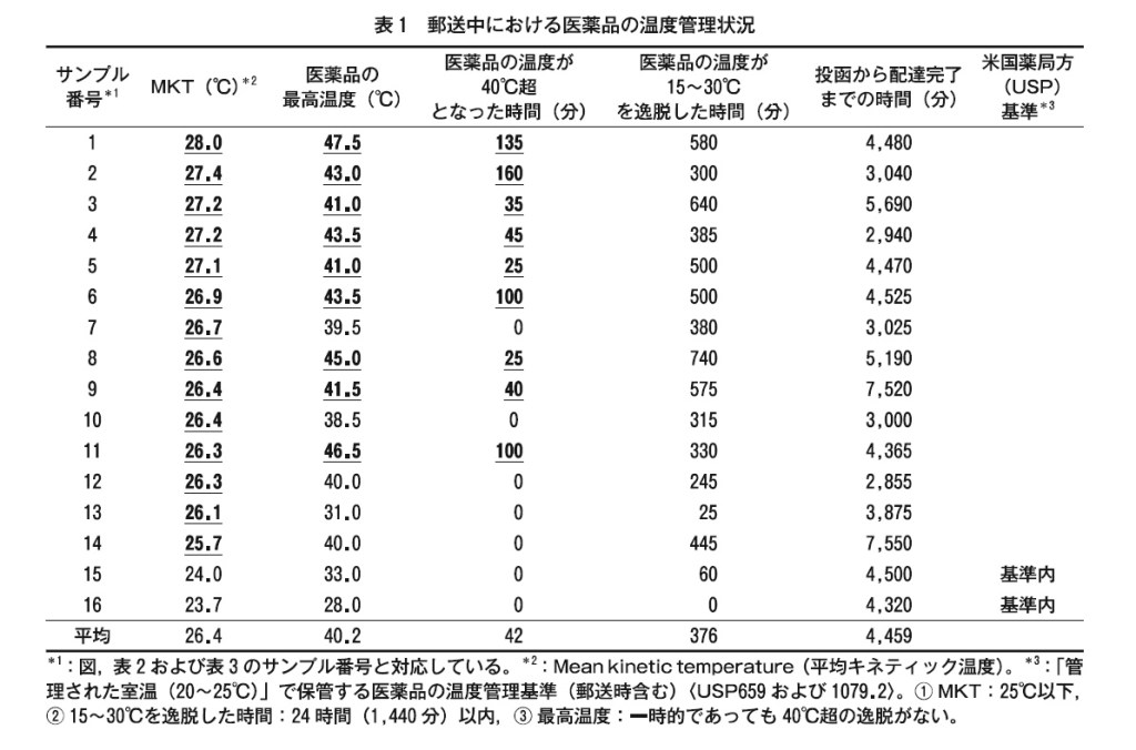 夏場の苛酷な気温下における郵便を利用した医薬品の配送と品質管理, 平賀秀明ら より