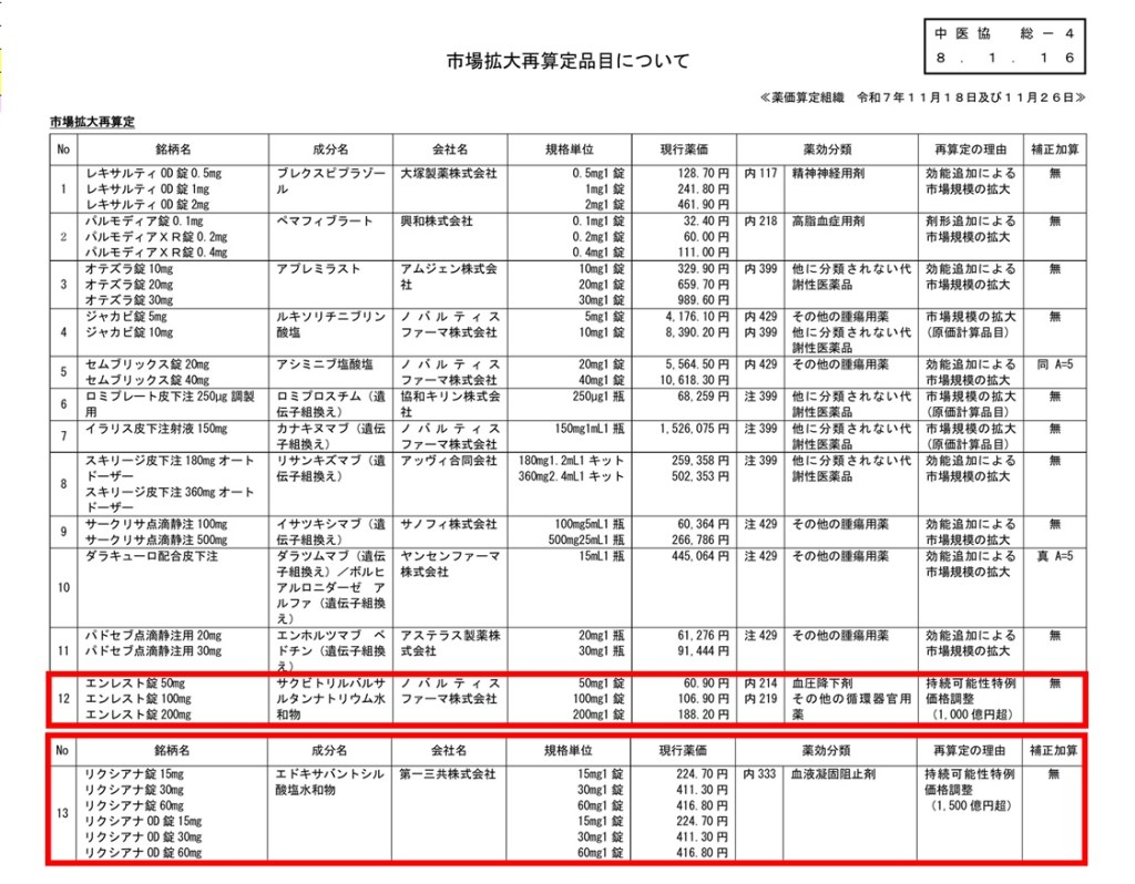 2026年度薬価制度改革の骨子で名称が「市場拡大再算定の特例」から「持続可能性特例価格調整」に名称が変わりましたが