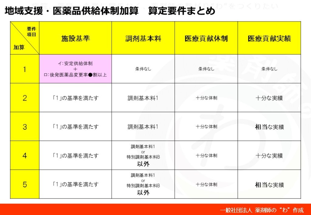 非常に長い名前ですが、「地域支援体制加算」の名前が改められて「地域支援・医薬品供給対応体制加算」になりました。