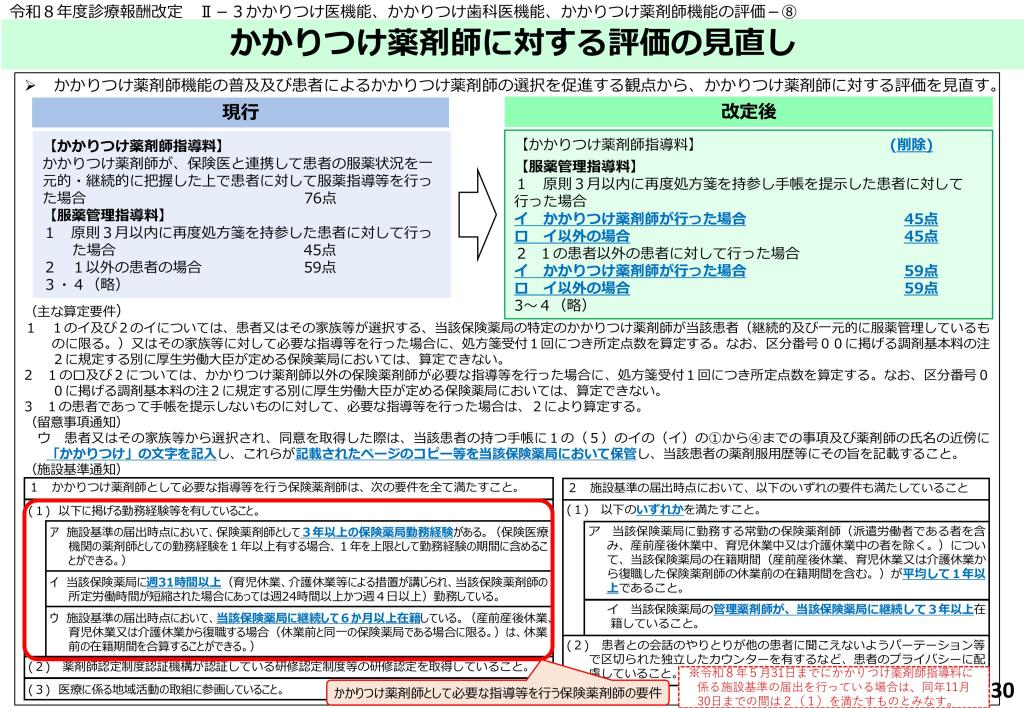 3月5日にR8年度調剤報酬改定の告示が発表されて、各加算の要件などが出ました。