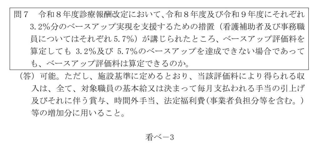 ベースアップ評価料に関する疑義解釈