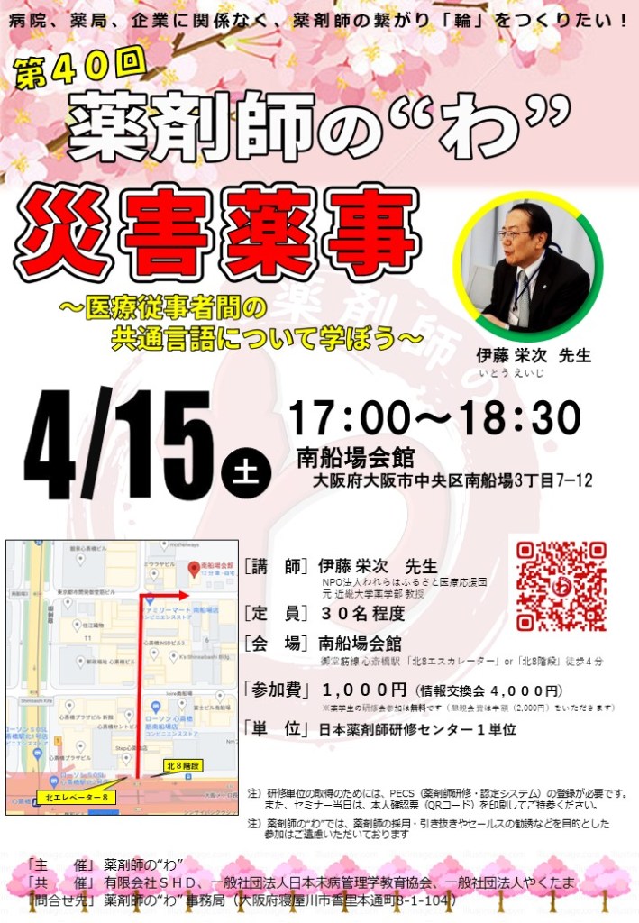 4月15日(土)は、第40回薬剤師の“わ” のセミナーです!!